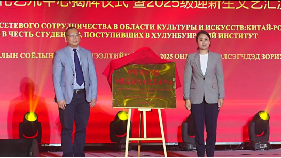 9月17日晚,“烽火记忆 同歌峥嵘八十载·青春和声 共谱友谊新华章”中俄蒙文化艺术中心揭牌仪式暨2025级迎新生晚会在学校体育馆举行。晚会邀请蒙古国立大学东部分校校长米达格玛、相关单位领导、嘉宾出席。 校党委书记李文阁,校党委副书记、校长张玉柱,校党委副书记张宏天,校党委委员、副校长高乐、张桂芝,各职能部门和二级学院领导、教师及2025级新生代表参加晚会。 李文阁代表学校致辞。他指出,中俄蒙文化艺术中心将汇聚三国高校的优质文化艺术资源,推动学术研究、艺术创作、展演互动、人才联合培养等多维度深层次合作,打造三国青年增进理解、碰撞思想、激发创造、厚植友谊的核心平台,为区域乃至世界的文明交流互鉴注入新的活力。他同时寄语同学们,要铭记历史的厚重,把握时代脉搏,以文化为魂、艺术为桥,与来自俄罗斯、蒙古的青年朋友们并肩同行,为个人梦想、为中俄蒙人民的友谊、为构建人类命运共同体贡献青春的智慧和力量。 张玉柱和蒙古国立大学东部分校校长米达格玛为中俄蒙文化艺术中心揭牌。 来自俄罗斯后贝加尔国立大学和蒙古国立大学东部分校的师生与我校师生同台带来一场歌曲、舞蹈、器乐等精彩的节目,展现了多元文化的魅力,传递了中俄蒙青年友好交流的美好愿景,为2025级新同学们带来了一场别开生面的文化盛宴。 项目启动期间,俄罗斯和蒙古国学生分赴音乐学院、蒙文学院、外国语学院,与中方学生开展轻松愉快的交流活动。大家通过自我介绍、趣味游戏、文化主题互动等环节增进了彼此的了解,共同留下美好的青春记忆。 活动期间,俄罗斯西伯利亚国立艺术学院校长卢赞·弗拉基米尔·谢尔盖耶维奇、东西伯利亚国立文化艺术大学校长别洛娃·叶琳娜·尤里耶夫娜、萨哈(雅库特)共和国高等音乐学院校长扎伊科娃·娜杰日达·米哈伊洛夫娜、俄罗斯后贝加尔国立大学校长马丁年科·奥克萨娜·奥列戈夫娜等发来贺电,对中心成立表示祝贺,并期待其在促进三国文化交流中发挥重要作用。 据悉,该项目由我校发起,联合俄罗斯后贝加尔国立大学、蒙古国立文化与艺术大学、俄罗斯东西伯利亚国立文化学院、西伯利亚艺术学院、别尔哥罗德国立艺术与文化大学等五所院校共同建设。未来,中心将依托三国交界的地缘优势,持续推动文明互鉴,为构建人类命运共同体注入青春力量。